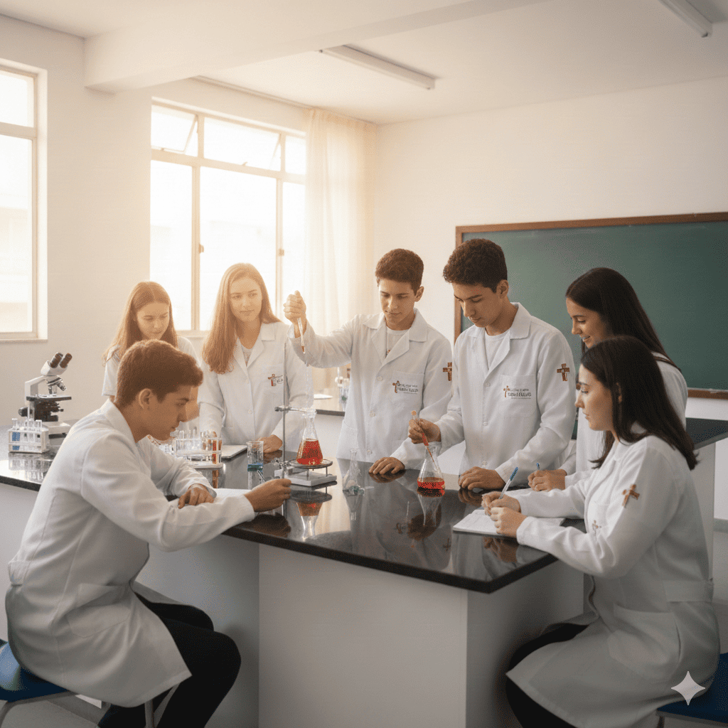 Nossa proposta educativa incentiva o diálogo, o pensamento crítico e a construção de projetos de vida, sempre fundamentados nos princípios cristãos. Caminhamos ao lado dos estudantes, ajudando-os a desenvolver autonomia, confiança e senso de responsabilidade, sem perder de vista o cuidado, a escuta e o respeito.